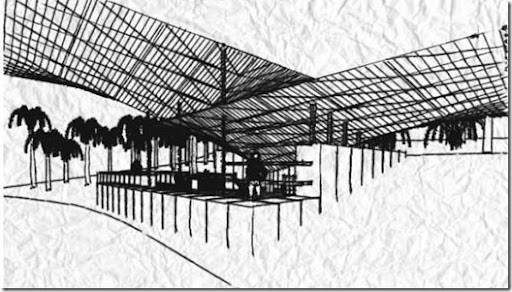Here this evening is what I'll call Holiday House 2, also by Organon Architecture , using two large cantlivered 'hypar' shells to define space and shelter.